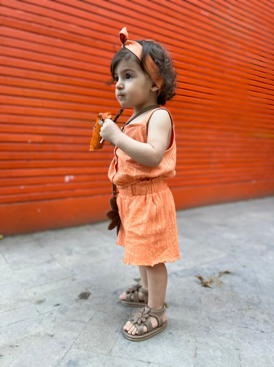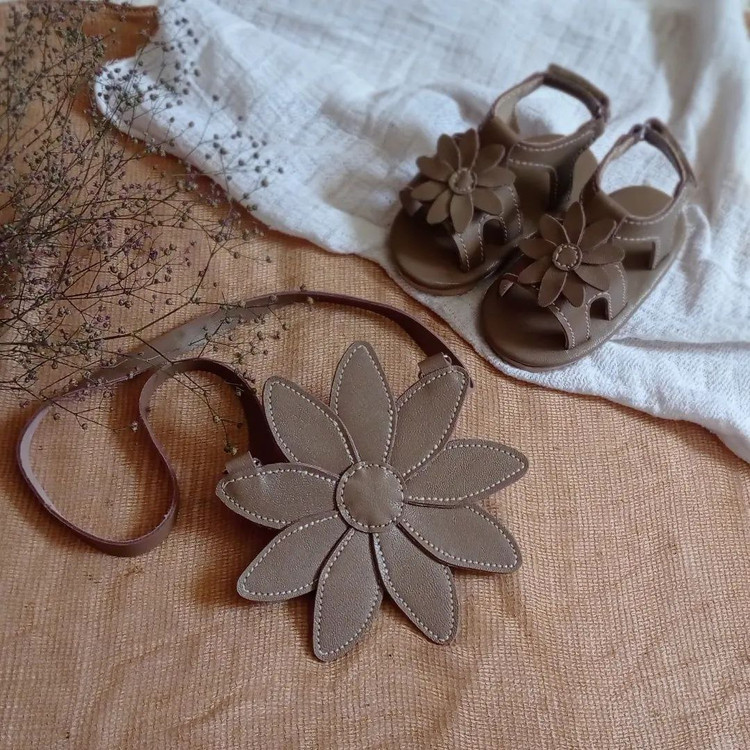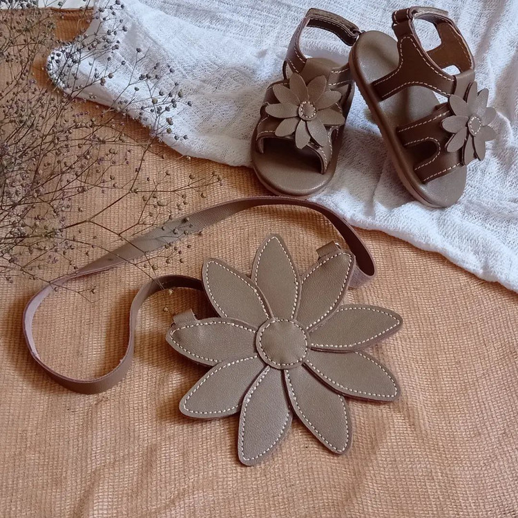 ست صندل و کیف بچگانه دریا مدل گل _ چرم طبیعی